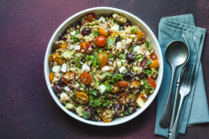 Insalata di farro con Olive Taggiasche e Quartirolo