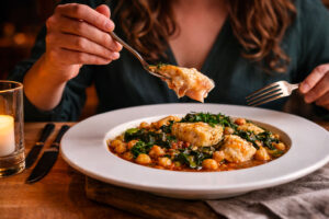 Zuppa di fagioli bianchi di Conio con cipolle e zafferano